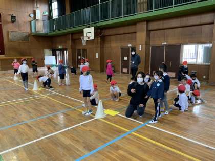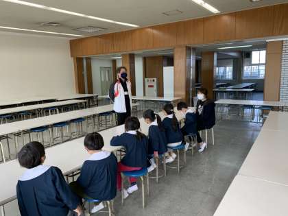 現1年生の授業参観、ランチルームで給食のお話、学校行事についてのスライドを見る等の活動を通して、小学校がどんなところかイメージでき、楽しみにしてくれるといいなと思います。