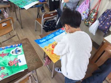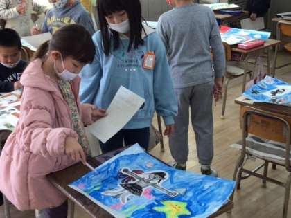 友だちの作品を見ていいなと思ったことをカードに書いていきます。