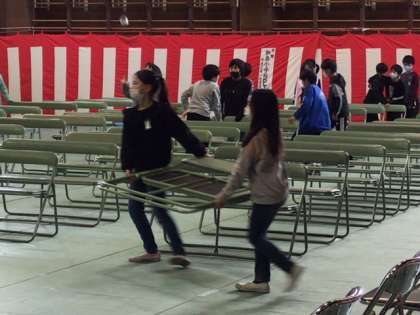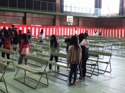 5年生が明日の卒業式の準備を手伝ってくれました。