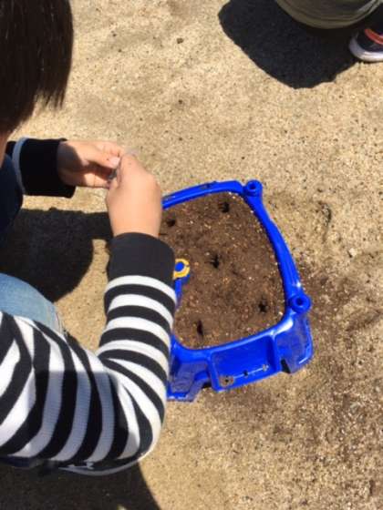 と、言いながらも、丁寧に土を入れたり、指でちょうどよい深さの穴をあけたりしながら、大事そうに種をまいている姿が見られました。