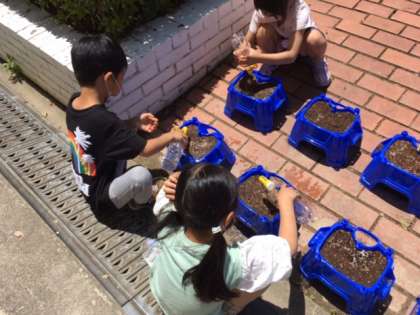 明日出るという子、明後日だという子、一週間後だという子…いろいろな予想が出てきました。さて、芽はいつ出るでしょうか。楽しみに待ちたいと思います。