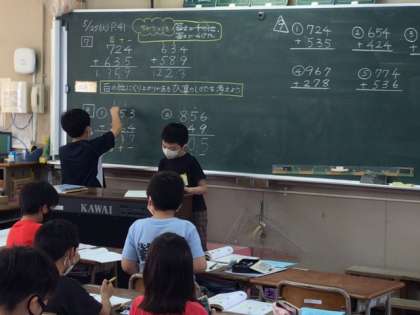 友だちが前に出て発表した答えをもとに、みんなで考えました。