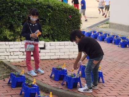 どんどん大きくなるあさがおに、うれしさいっぱい、やる気いっぱいです。