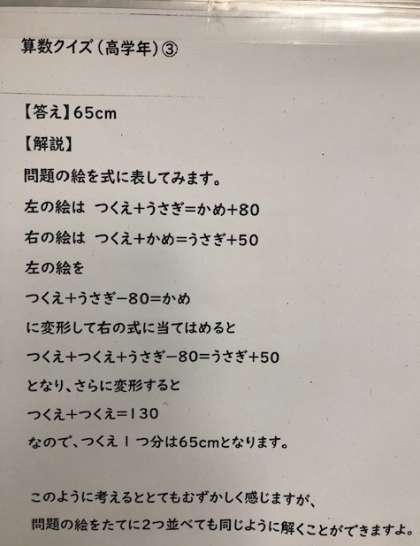 第3回算数クイズの答え(高学年・大人)