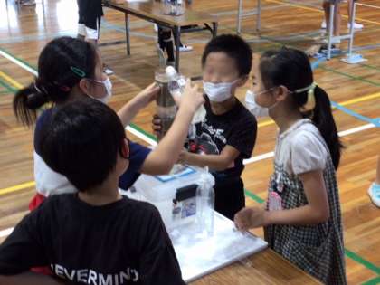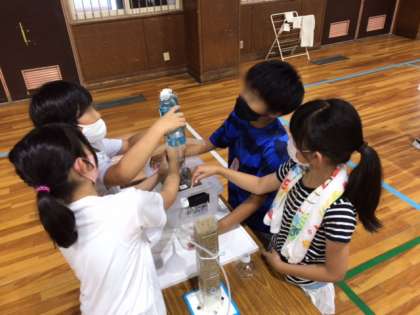 また、砂や活性炭を使って、実際に汚れた水をきれいにする実験もおこないました。