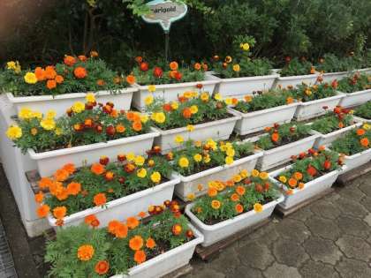 正門を入ったところはマリーゴールドがきれいに咲いています。