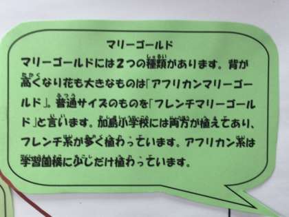 マリーゴールドの豆知識は、管理作業員さんの表示です。