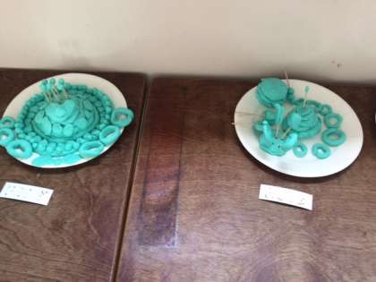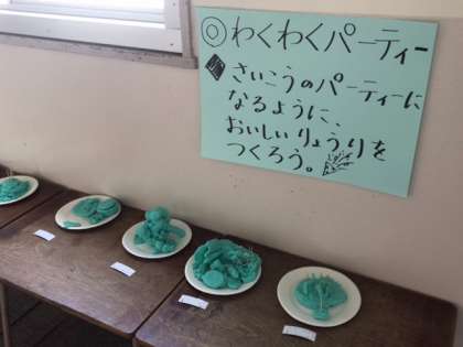 図画工作科の時間に、「わくわくパーティー」として粘土を使って自分の好きなお料理を作ってみました。