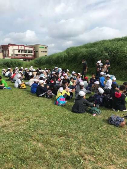 高丸山から下山して、風の広場でおやつのジュースを飲んでいるところです。