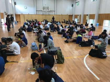 急な雨のため、外の広場ではなく、体育館でお弁当を食べることにしました。