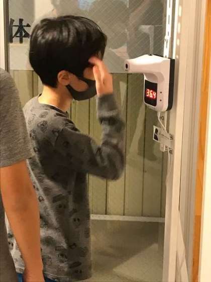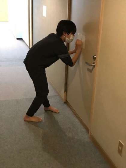 体温を計り、部屋の体調管理表に記入します。