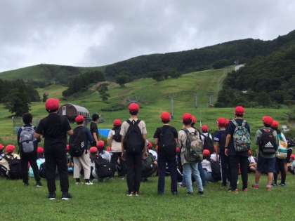 記念写真を撮った後、広い高原を加島小学校6年生が独り占めして遊びます。