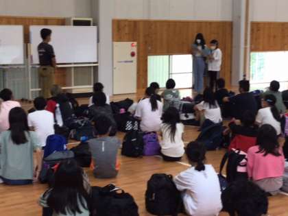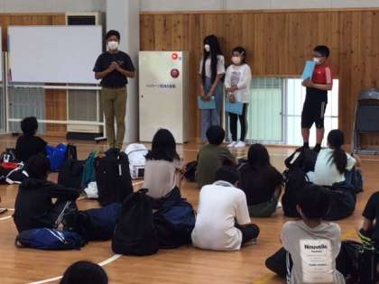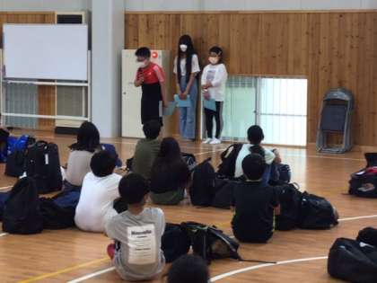 児童代表の人から、サンダイフクさんへ2日間のお礼の言葉を伝えてもらいました。