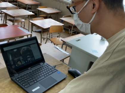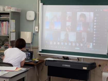 放課後にご家庭のご協力をいただき、初めてのオンライン学習に取り組みました。