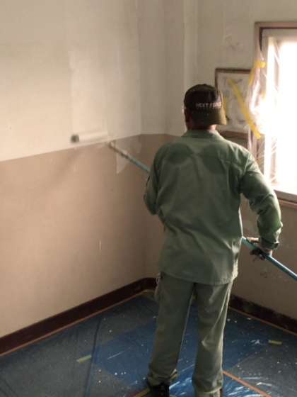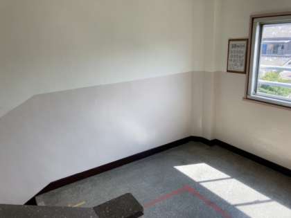 夏休みの間に管理作業員さんお二人で、校舎内の壁面をきれいに塗ってくださっています。