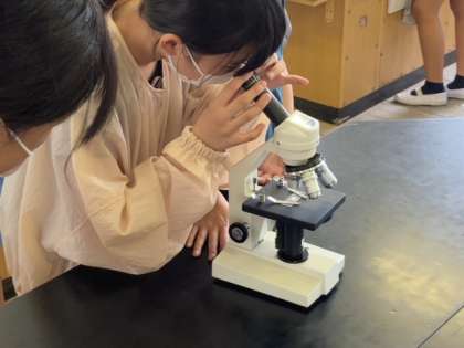 カボチャやユリの花粉を顕微鏡で観察しました。