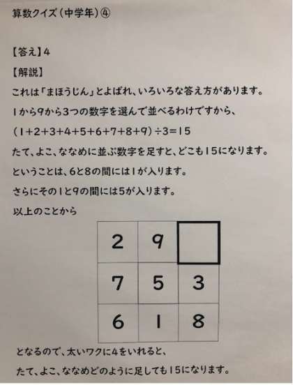 中学年クイズの「まほうじん」は、なかなか難しいのですが、じっくりと考えた人がいたようで、たくさん正解できましたね。
