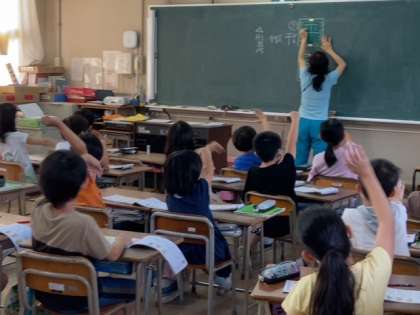 新出漢字の筆順にも気をつけて、みんなで手全体を使って空書きをしました。