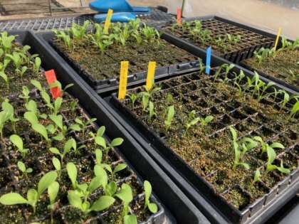 夢ちゃん花づくり隊の方々と栽培委員会で種まきしたキンセンカの芽がみるみるうちに大きくなってきました。