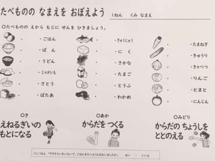 それぞれ、どんな食べ物があるのか、体の動きも使いながら、楽しく学ぶことができました。