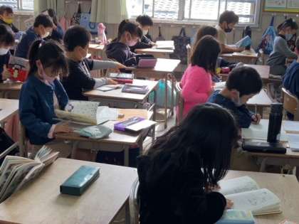 読み聞かせをしている学級もありました。