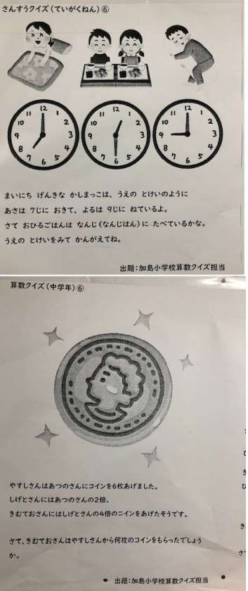 運動会が終わり、職員室前の掲示板には第6回の算数クイズが張り出されました。ランドセルを背負ったまま必死で問題を解いている子、問題の中に先生方の名前を見付けて喜んでいる子、など色々な様子が職員室からうかがえます。今回は正解できるかな?たくさんのチャレンジを待っています!