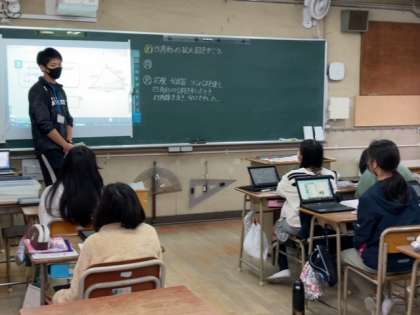 三角形の拡大図、縮図のかき方は前に学習しているので、四角形を三角形に分けて考えるとかけることがわかりました。