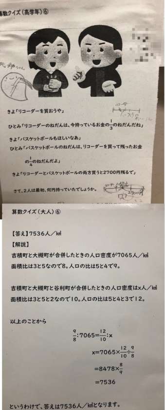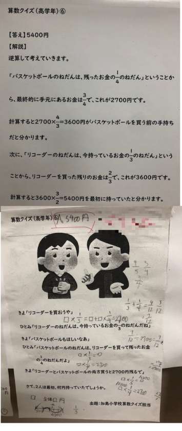 高学年問題の正解者は13人、大人問題は10人でした。こちらは、6年3組の子どもたちが活躍!大人問題にもチャレンジして正解した人がいました。次回もがんばってくださいね。