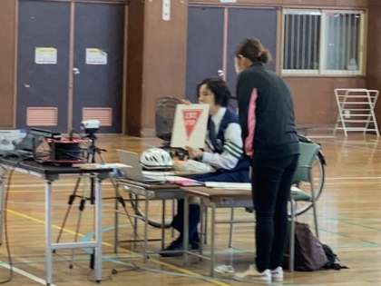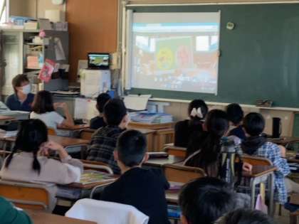 多くの学年が集まってお話を聞くことができませんので、講堂からオンラインで警察の方のお話を各教室に配信しました。