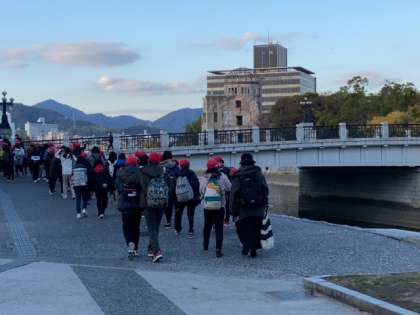 修学旅行 平和記念公園を出発