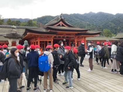 残念ながら、大鳥居は修復中で囲いで覆われていました。