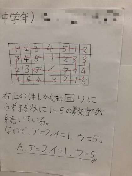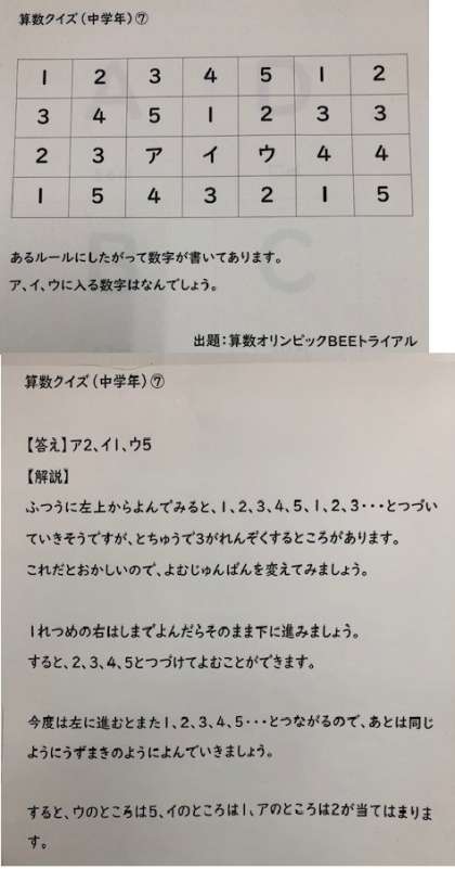 第7回 算数クイズ答えのホームページへの掲載が大変遅くなりました。どんな問題だったか思い出すために、問題と答えを一緒にごらんください。
