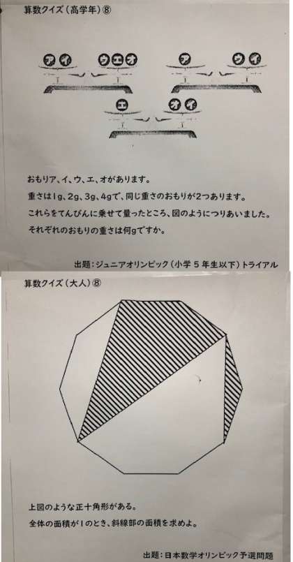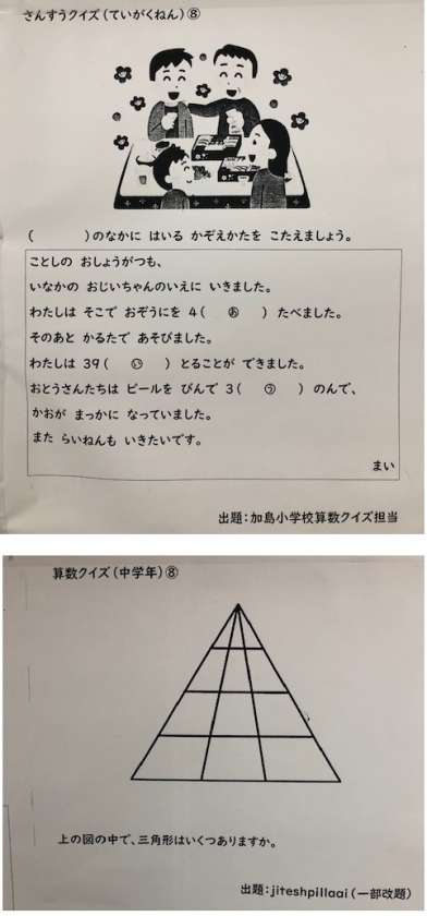 24日から冬休みに入るので、2学期最後の算数クイズです。冬休みにゆっくりご家族そろってクイズにチャレンジしてくださいね。