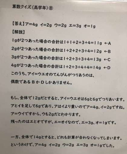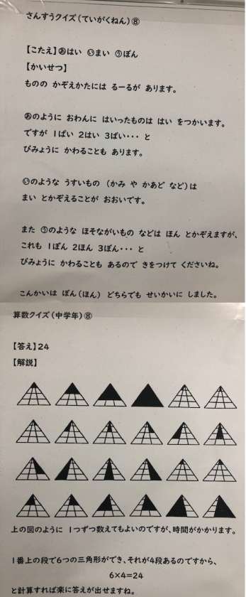 第8回算数クイズ答え(低学年・中学年・高学年)