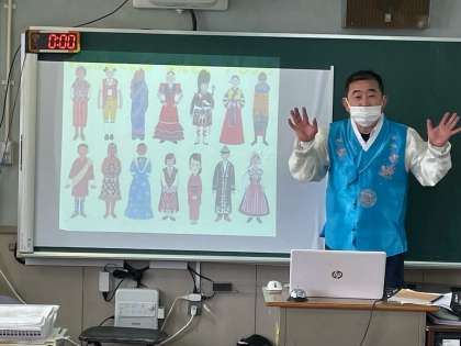 ンセンニムが2年生に韓国・朝鮮の国について勉強を教えに来てくださりました。