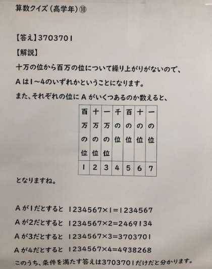 第10回算数クイズ答え(低学年・中学年・高学年)
