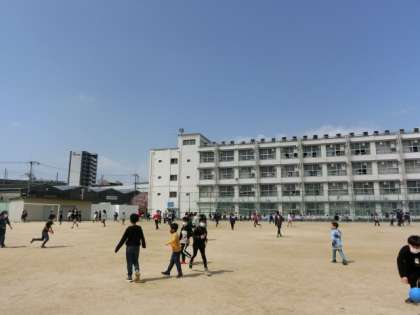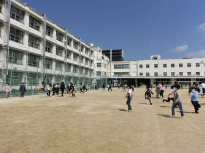 休み時間に運動場で友だちと、元気に仲良く遊ぶ子どもたちがたくさんいました。