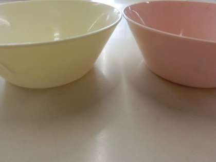 写真の左側が鶏卵の除去食の献立で、ピンク色の食器が除去食を給食室から提供するときに使用している物です。