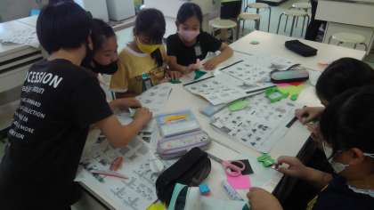 写真は、上から「世界ボードクラブ」「バスケットボールクラブ」「折り紙クラブ」の様子です。