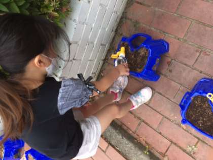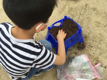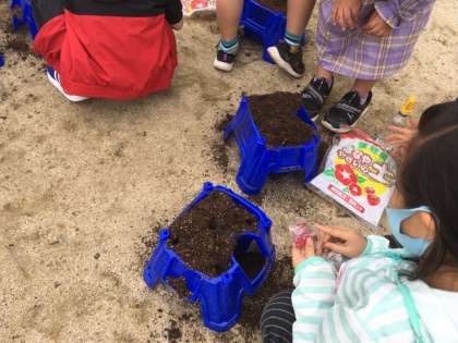 5月17日火曜日にあさがおの種を植えました。一つひとつの小さな種をとても大切そうに植え、やさしく土をかけていました。