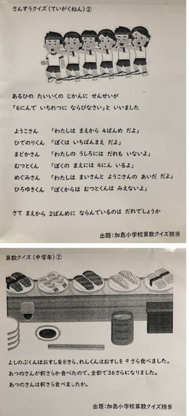 6月になりました。第2回算数クイズがすでに職員室前に張りだされています。今回も楽しみながら、じっくり考えてくださいね。たくさんのチャレンジを待っています。