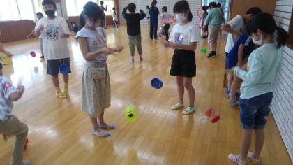 韓国・朝鮮や中国の遊びを、各クラスごとに新多目的室で楽しみます。