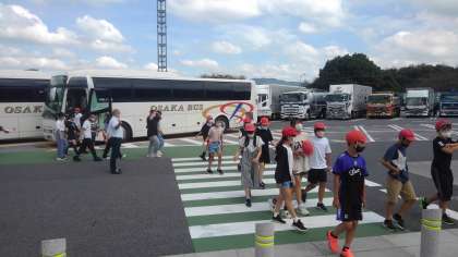 広島県に入りました。2回目のトイレ休憩です。長時間のバスで寝ている子も多くなりました。平和公園まで、もうすぐです!!
