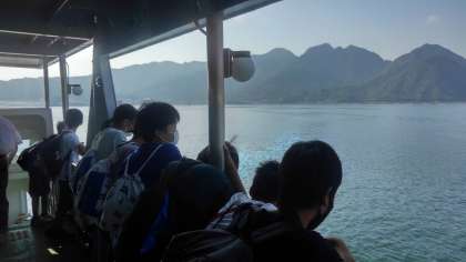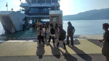すぐにフェリーに乗り込み、海風を感じながら、宮島までの束の間のクルージングです!