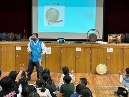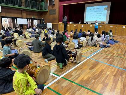 毎週国際理解教室で開講しているアギコレのソンセンニムが、3年生に韓国朝鮮の伝統楽器の体験活動を準備してくれました。