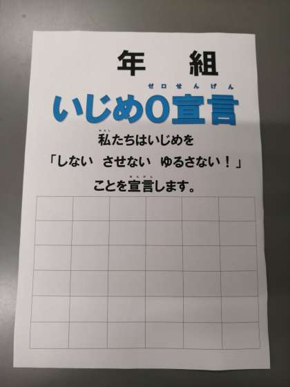 本日、加島小学校は「いじめについて考える日」でした。校長先生のお話を聞き、各学級で一人が一人がいじめを「しない・させない・ゆるさない」ことを全員で考えました。
