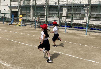 スポーツテストをしました。50m走、ソフトボール投げ、立ち幅跳びの3種目を行いました。