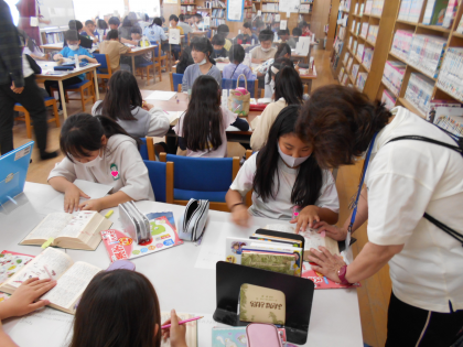 先生と一緒に「性格をあらわす言葉」をたくさん調べ、出てきた言葉のページに付箋を貼っていきます。きっと辞書の付箋が増えれば増えるほど、子どもたちの語彙力も上がっていくのでしょう。