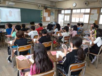 DVDを視聴しながらクイズを解いたり、鏡を使って自分の口の中を観察したり、歯ブラシやデンタルフロスを使いながら、みがき方を学習したりと盛りだくさんな内容でしたが、子どもたちは真剣な様子で取り組んでいました。デンタルフロスで取れた自分の歯垢のにおいを嗅ぐシーンでは、どのクラスでも「くさ〜い!」と声が上がり、道具を使い分けることの大切さを実感できたのではないかと思います。