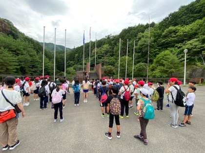 今は曇っていますが、少しずつポツポツと雨粒が降り始めました。午後の山登りは、体育館のスポーツ大会に変更することになります。